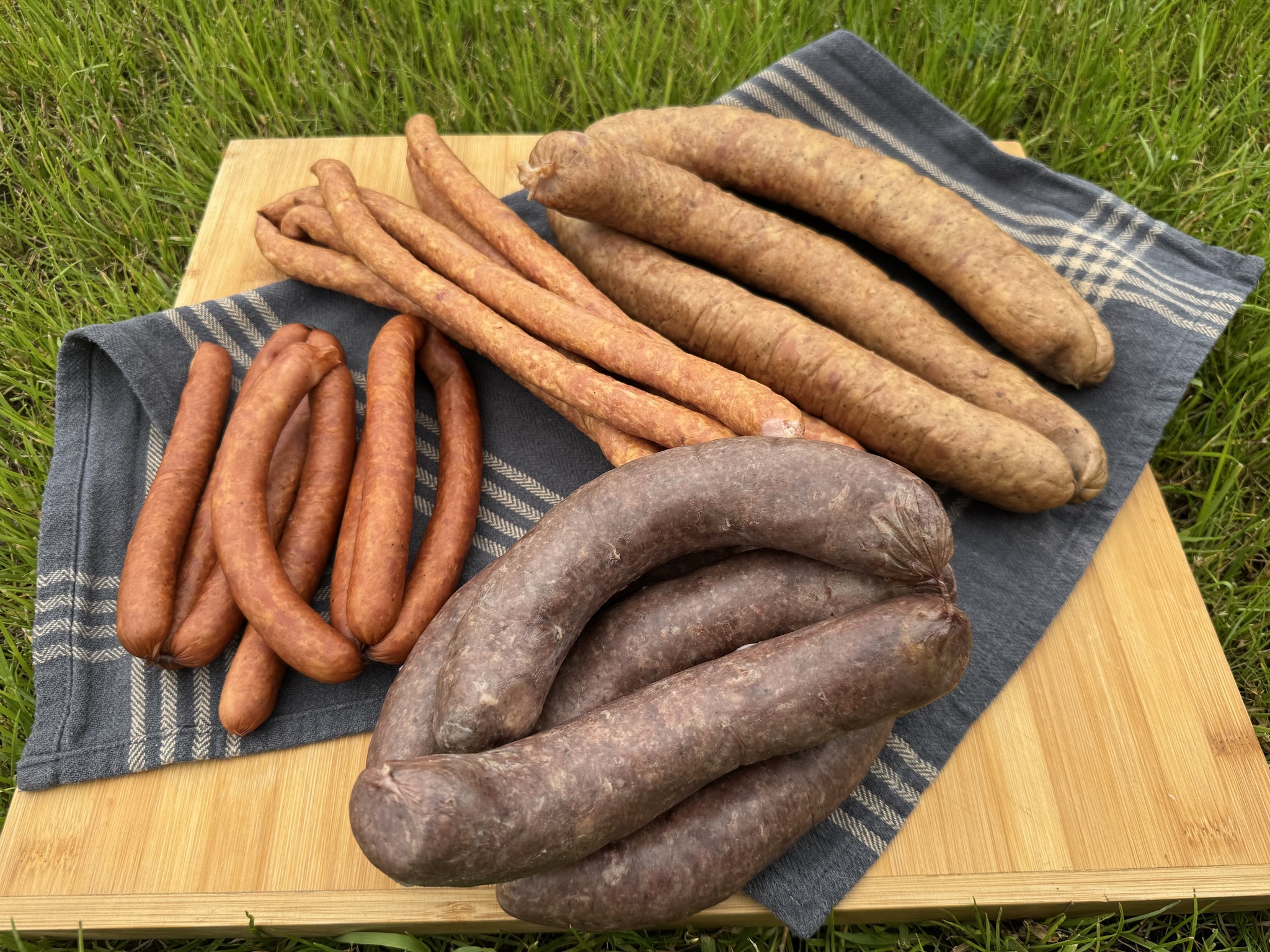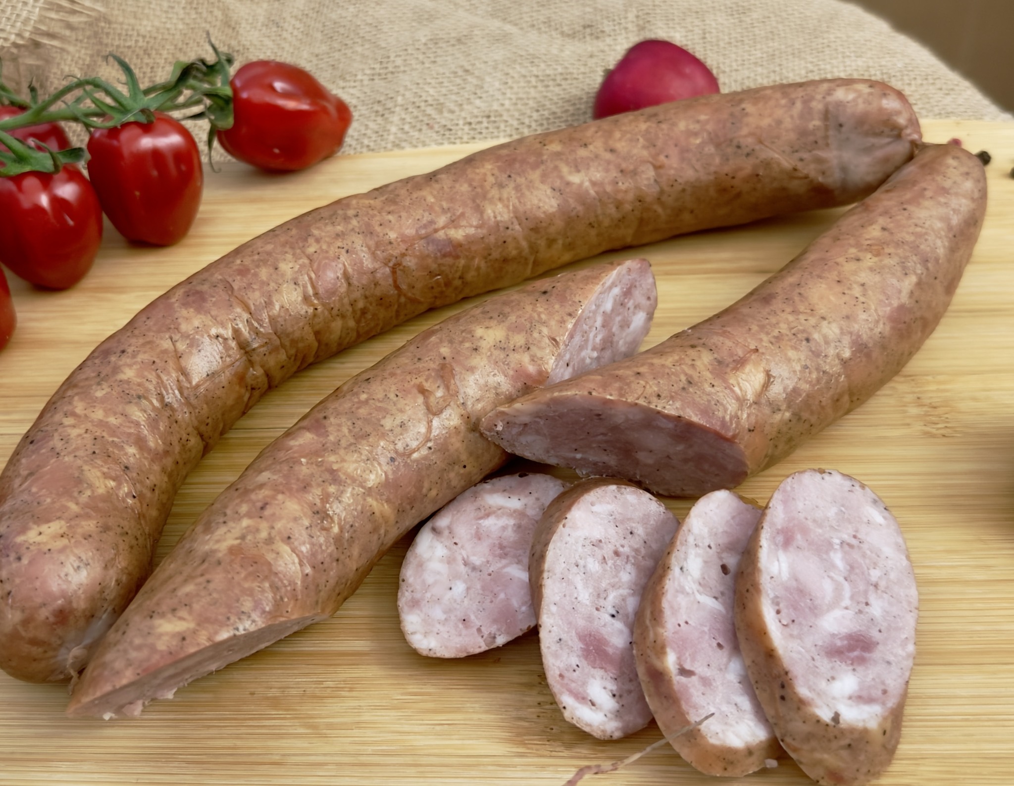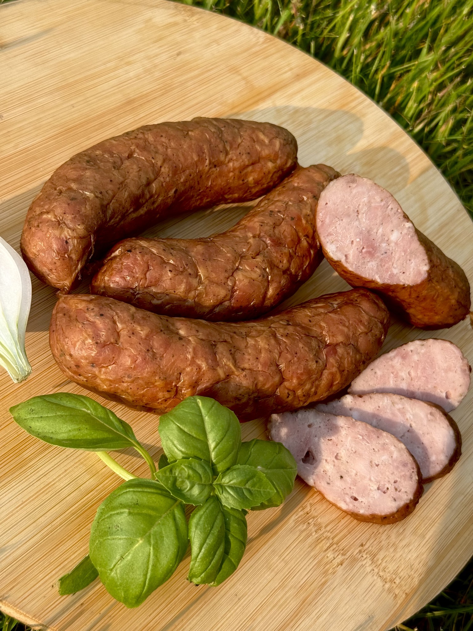 Pętka grillowe (sezonowo) – Delikatne, soczyste kiełbaski idealne na ruszt lub ognisko, które nie pękają i zachowują pełnię smaku.