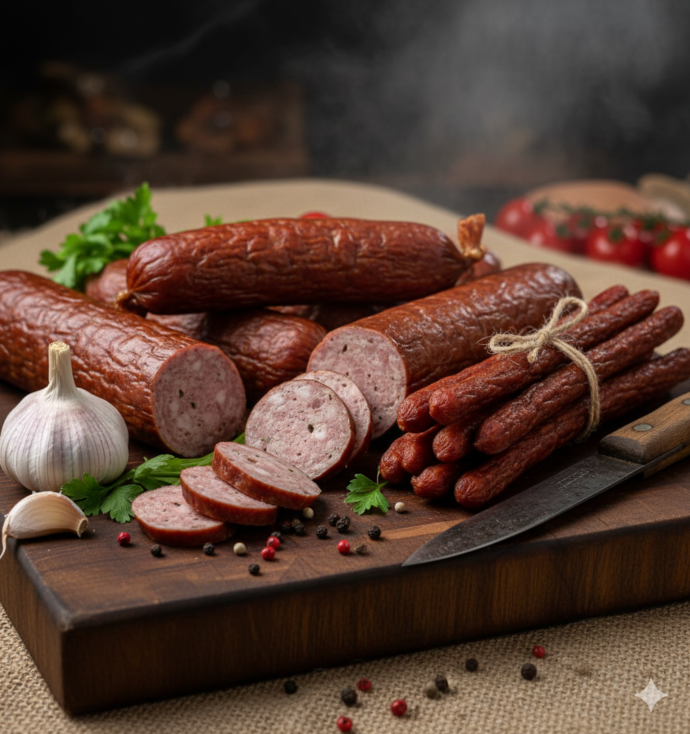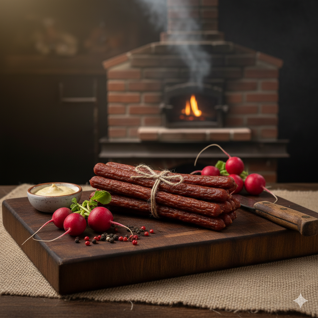 Kiełbasa jałowcowa – Tradycyjny aromat owoców jałowca połączony z dymem z drewna bukowego.
